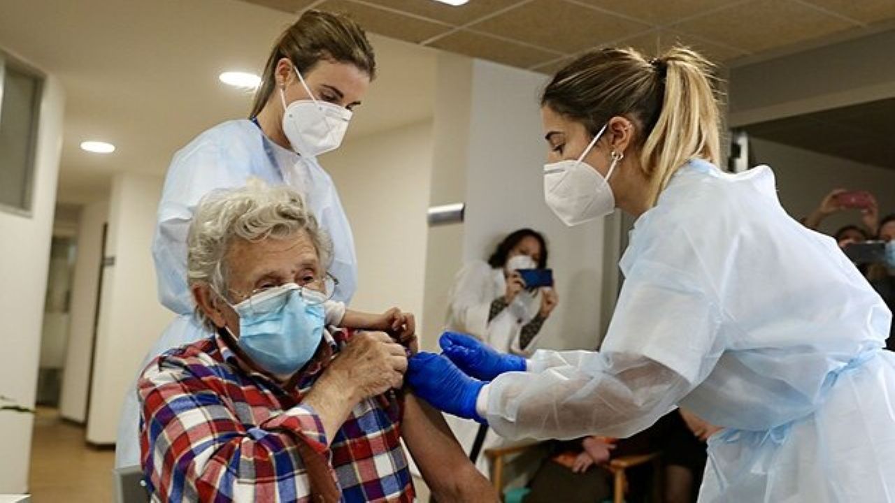 Administración del Principado de Asturias, “First day of vaccination against COVID-19 — a woman receives her first dose in ‘Residencia Mixta’ of Gijón (Asturias),”